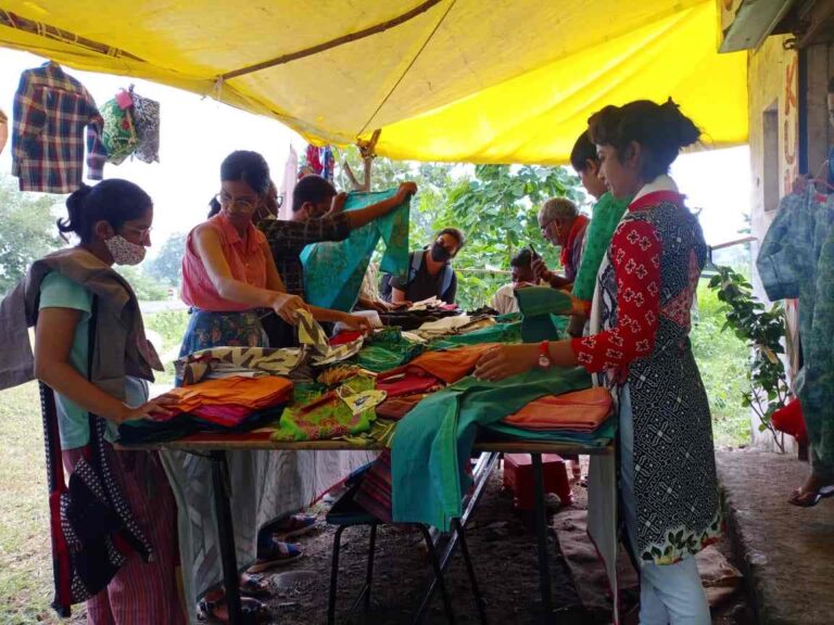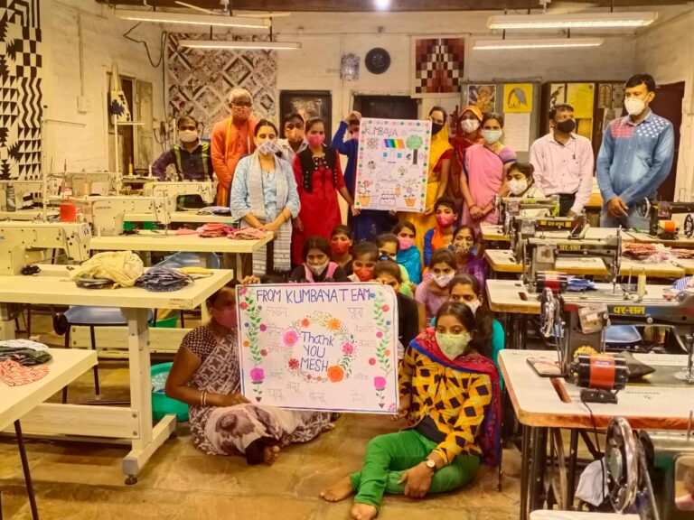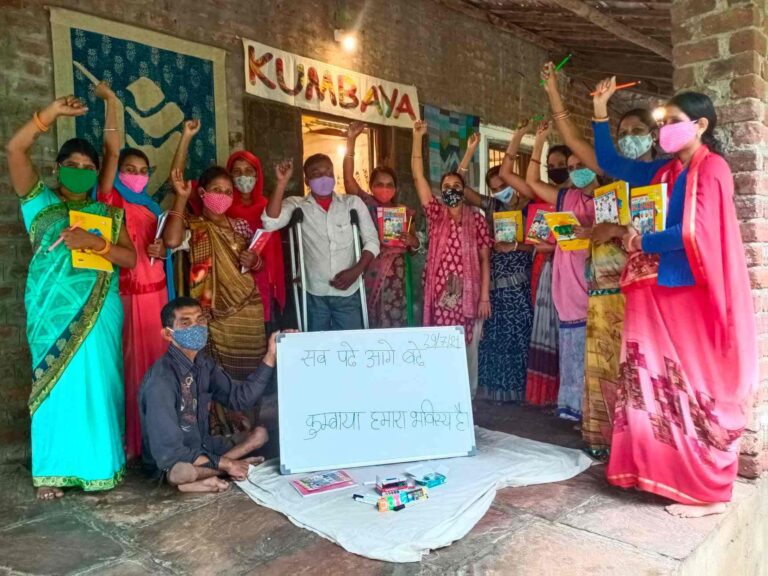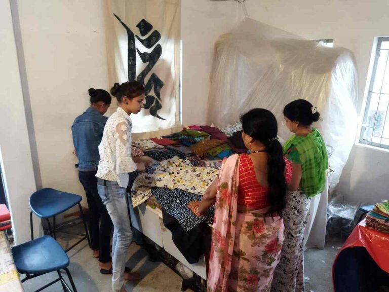 Kumbaya was started to empower women with the art of stitching. It has been more than 20 years since the day women from Neemkheda village saw patchwork cushions made out of old clothes at SPS. The next day, building an earthen dam in the scorching sun with head loads of clay, they said they wanted to learn how to stitch.
