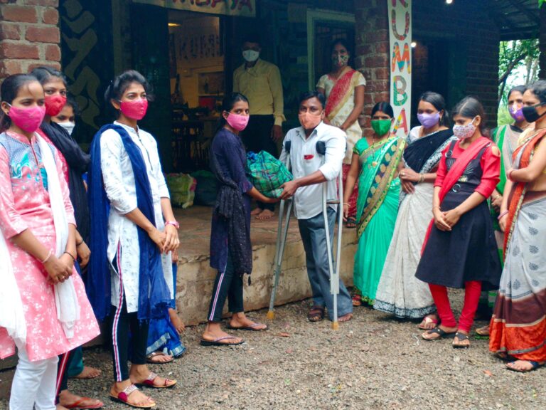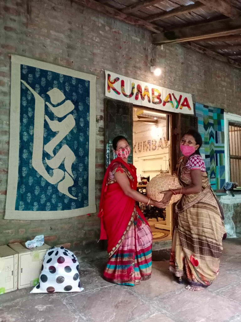 The unique significance of Kumbaya is that these products are made by women from one of the most remote, backward and poor regions of India, because of a new skill and employment opportunity introduced in a predominantly agrarian region where there have been no traditional marketable crafts. Kumbaya has four centres in different villages where employment is available and guaranteed, for almost 300 days in a year to over 80 producers. Today over 1000 women in 70 villages have learned stitching. Apart from the producers who work regularly with us, hundreds of those trained stitch from home. Kumbaya is also deeply committed to disabled women and men, whose inability to contribute manual labour in an agricultural area like ours leads to their marginalization and abandonment. The most rewarding impact of Kumbaya has been including them as skilled producers and high earners.