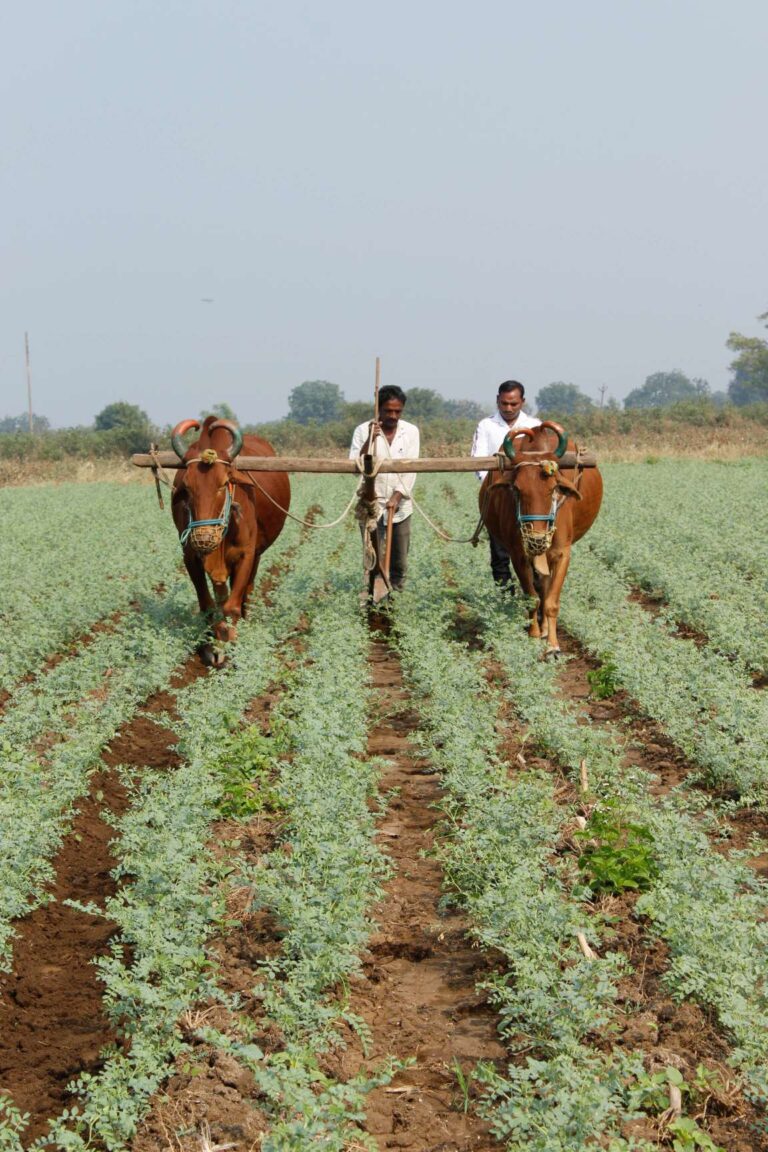 Field trials of improved crop varieties suited to the local area and their propagation is one important aspect of the programme. Till now, we have conducted field trials with 120 improved varieties of 15 major crops of the area – sorghum, maize, pigeon pea, soybean, cotton, groundnut, black gram, green gram, chick pea, pearl millet, sesame, foxtail millet and wheat – which give good yields even with low external inputs. Of these we have short-listed 60 varieties as suited to the farming conditions of the local area. Since the resource position of the farmers is highly variable from village to village, these varieties offer a wide menu for the farmers to choose from. These varieties have been developed from the local germplasm by scientists working on-location across India’s drylands and are, therefore, well adapted to this challenging environment. This package of agricultural practices has a major objective of regulating demand for water. Some of the activities include dry sowing of rabi crops like wheat, shift in cropping pattern towards less water-demanding varieties, interventions for enhancement of soil moisture and the use of micro irrigation systems like drips and sprinklers.